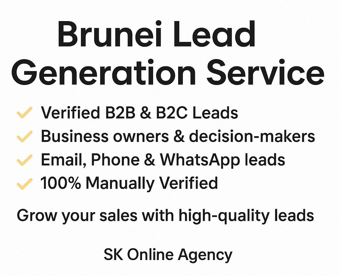 Looking to grow your business in Brunei Darussalam with real, verified leads? Our Brunei Lead Generation Service helps businesses, agencies, and entrepreneurs connect with the right audienceβwhether you need B2B contacts, B2C customers, decision-makers, or niche-specific leads.