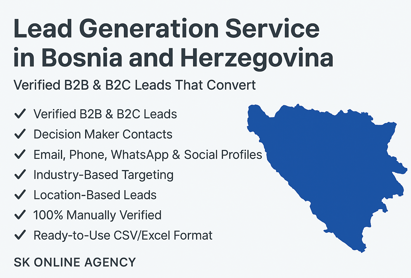 Expand your business in Bosnia and Herzegovina with our premium Lead Generation Service, designed to deliver high-quality, accurate, and ready-to-convert B2B & B2C leads from any industry.